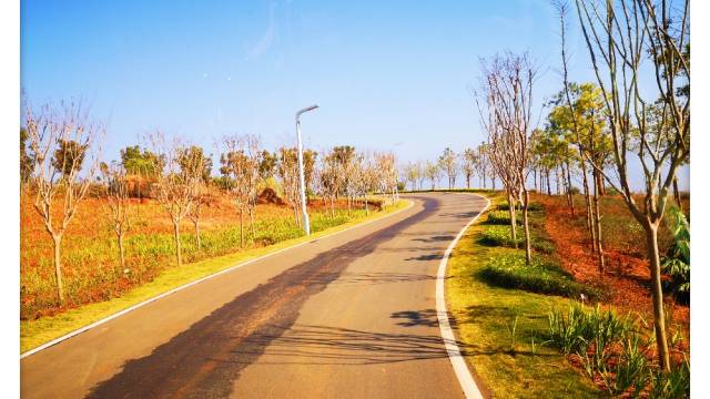 進(jìn)入城市,這條街道的樹很美。