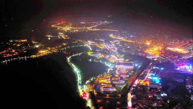 航拍視頻:夜色朦朧,彌勒湖泉夜景依然那么美麗。