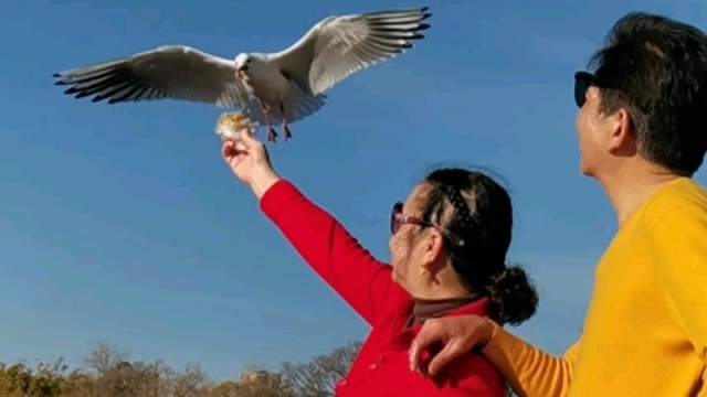 慢鏡頭拍攝大觀樓公園人鷗同樂