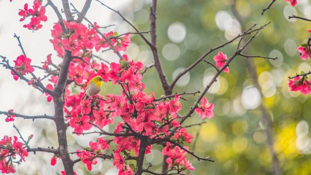 二月里綻放的貼梗海棠。