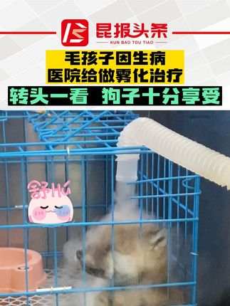 毛孩子因生病需做霧化治療,主人轉(zhuǎn)頭一看,狗狗十分享受 #享受#