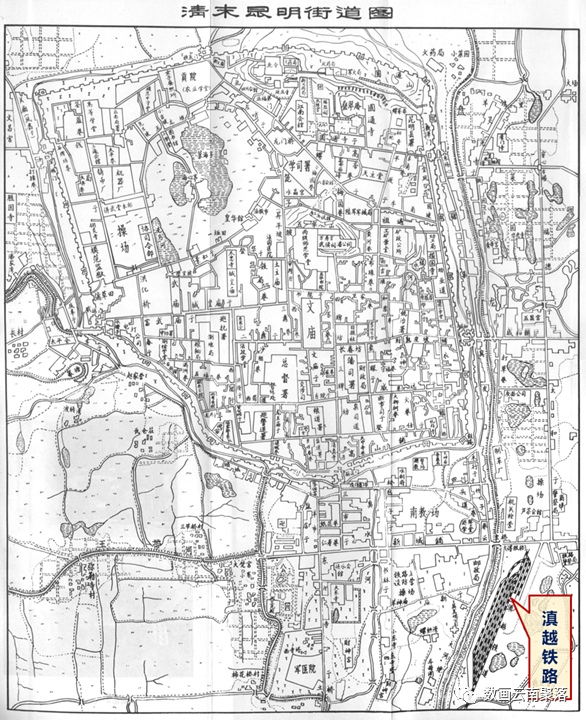 清末民初的昆明城與滇越鐵路,制圖@鄭溪/數(shù)畫(huà)云南聚落,底圖@施維克