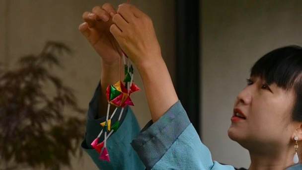 端午到了,在茶寮亭子里掛一串五彩的草菱角??????