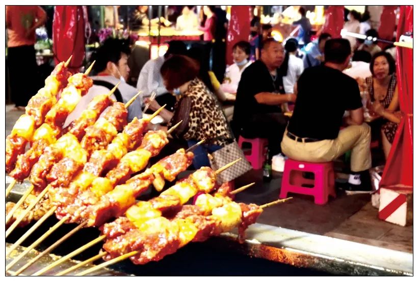 進(jìn)入雙橋夜市風(fēng)情園,也就投入了人間煙火的懷抱。尋一個(gè)烤架、圍一張桌子,舌尖上的五味俱全,杯盤(pán)里的人情世故,混合著鐵鍋鐵鏟的碰撞聲、山呼海嘯的吆喝聲、食材與烈焰相愛(ài)相殺的嗞啦聲,統(tǒng)統(tǒng)化作難忘的回憶。這正是雙橋夜市最大的魅力,煙火處,溫暖時(shí),裊裊不絕。