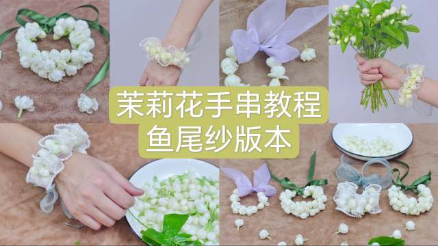 浪漫又充滿愛的茉莉花手串——魚尾紗絲帶茉莉花手串教程
