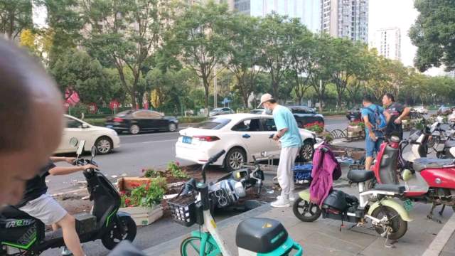 剛剛,北辰財(cái)富中心中心旁白車撞向花壇和非機(jī)動(dòng)車道