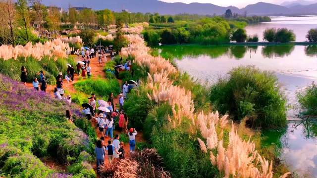 草海隧道公園~秋色宜人~荻花、狼尾草竟相盛開~游人似潮水般的涌入~人如潮~花如?!揪团牟煌辍?