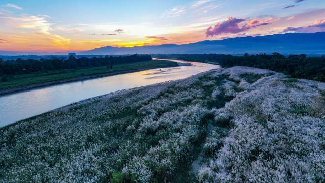 放眼望去,大盈江畔簇?fù)頁u曳的蘆穗,