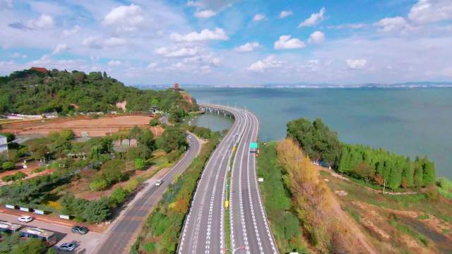 昆明最美水上公路--觀音山大橋,車在水上走,人在畫中游