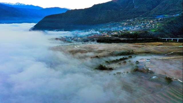 云霧繚繞是丙中洛觀景臺的常態(tài)。這些云霧在山間游蕩,時而聚集在山頭,時而散開在山谷。它們在風的吹拂下不斷變幻著形狀,為這片土地增添了幾分神秘和浪漫。