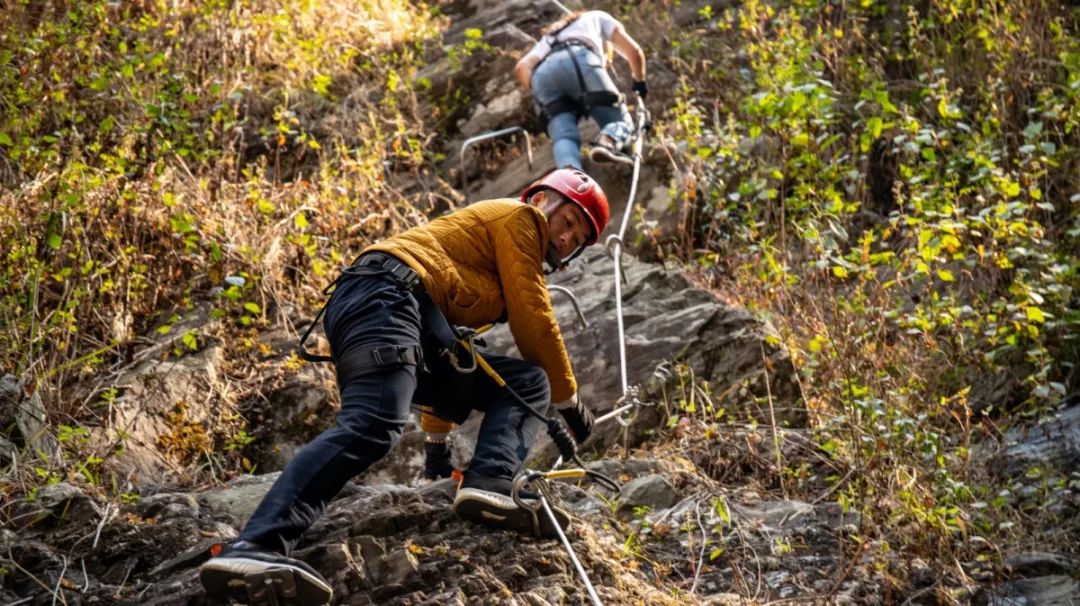 瀑布飛拉達(dá)帶你穿過山腳到達(dá)山頂,體會(huì)“一覽眾山小”的豪邁氣勢(shì),瀑布飛拉達(dá)路線總共分為三條,初級(jí),中級(jí),高級(jí),級(jí)別越高難度越大,高級(jí)路線,全程都在百米懸崖上攀爬,在我看來這是挑戰(zhàn)自我的項(xiàng)目。