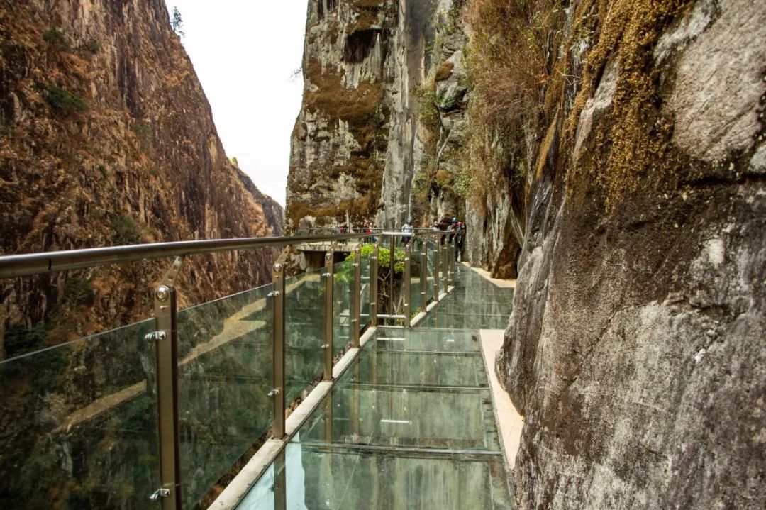 走進(jìn)峽谷,抬頭就能看見玻璃棧道高高掛在懸崖半腰,徒步登上玻璃棧道,峽谷的險(xiǎn)峻,幽深盡收眼底。