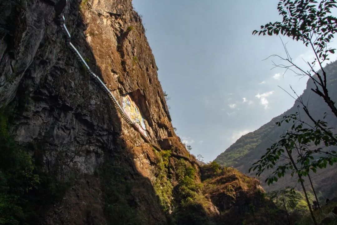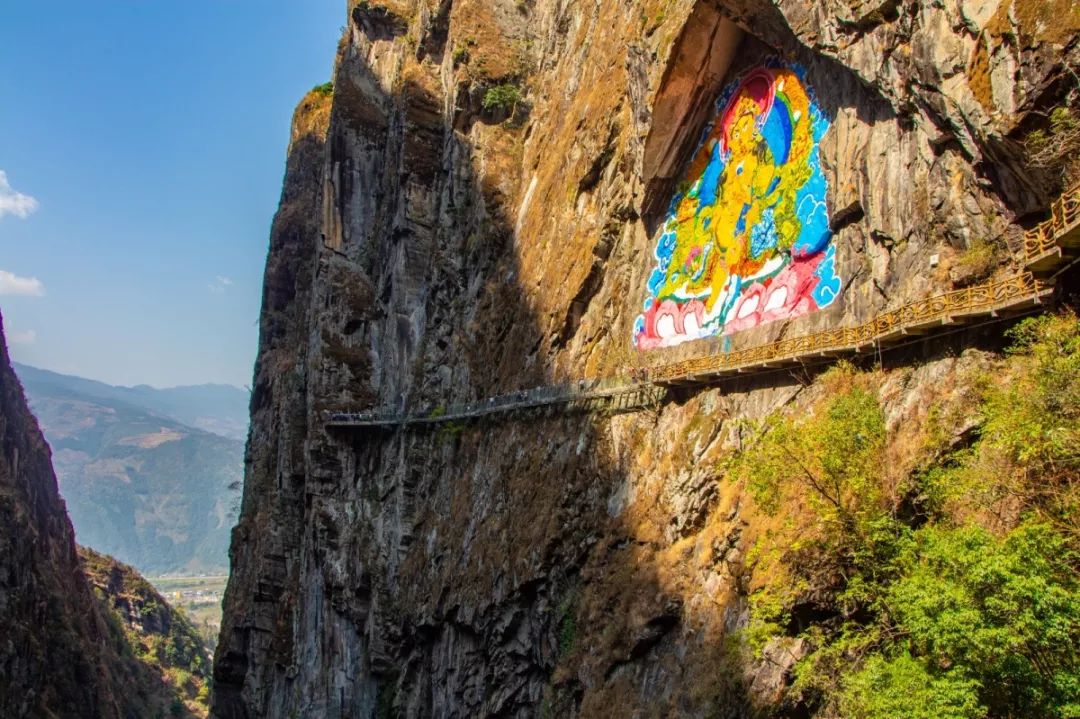其中,高空玻璃棧道和網(wǎng)紅廁所是最不能錯(cuò)過的,玻璃棧道鑲在懸崖上,距離地面有百米左右,在玻璃棧道的上方還有一幅巨大的壁畫,為這一個(gè)地方增添了幾分神秘感。