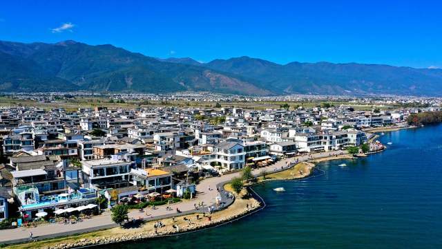 S灣的一側是素墨丹青的白族民居,另一側是碧波蕩漾的洱海,生動而唯美。