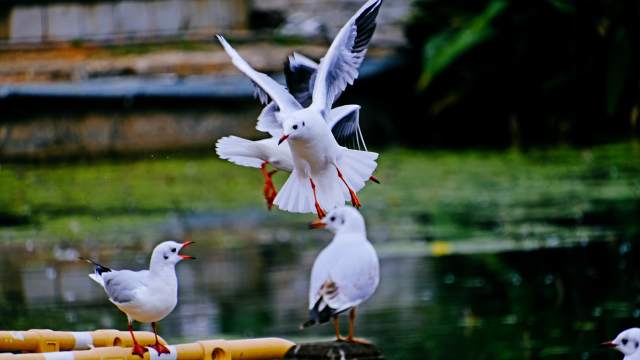直到老鷹被趕走,海鷗們歡快地返回湖面。