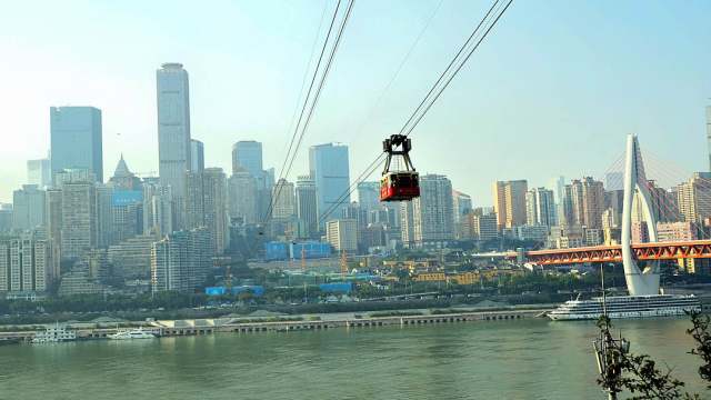 從索道上俯瞰,可以看到整個重慶的美景,包括著名的洪崖洞和來福士。晚上來的話,還能欣賞到江邊絢麗的燈光夜景,簡直美不勝收。