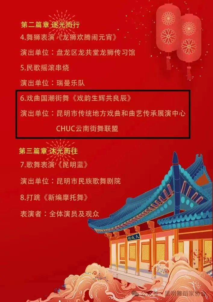 2月24日(正月十五),昆明市“歡歡喜喜過大年——文廟鬧元宵·邀您共良辰”文藝晚會在文廟落下帷幕。由昆明戲劇家協(xié)會、昆明舞蹈家協(xié)會聯(lián)合出品,昆明市傳統(tǒng)地方戲曲和曲藝傳承展演中心、昆明舞蹈家協(xié)會街舞委員會、CHUC云南街舞聯(lián)盟創(chuàng)作表演的戲曲國潮作品《戲韻生輝共良辰》亮相晚會現場。劇目以傳統(tǒng)戲曲古典藝術與現代街舞形式相融合,創(chuàng)新舞臺表現手段,充分展現昆明舞臺藝術發(fā)展的最新成果,呈現出精彩別致的傳承與創(chuàng)新畫面。