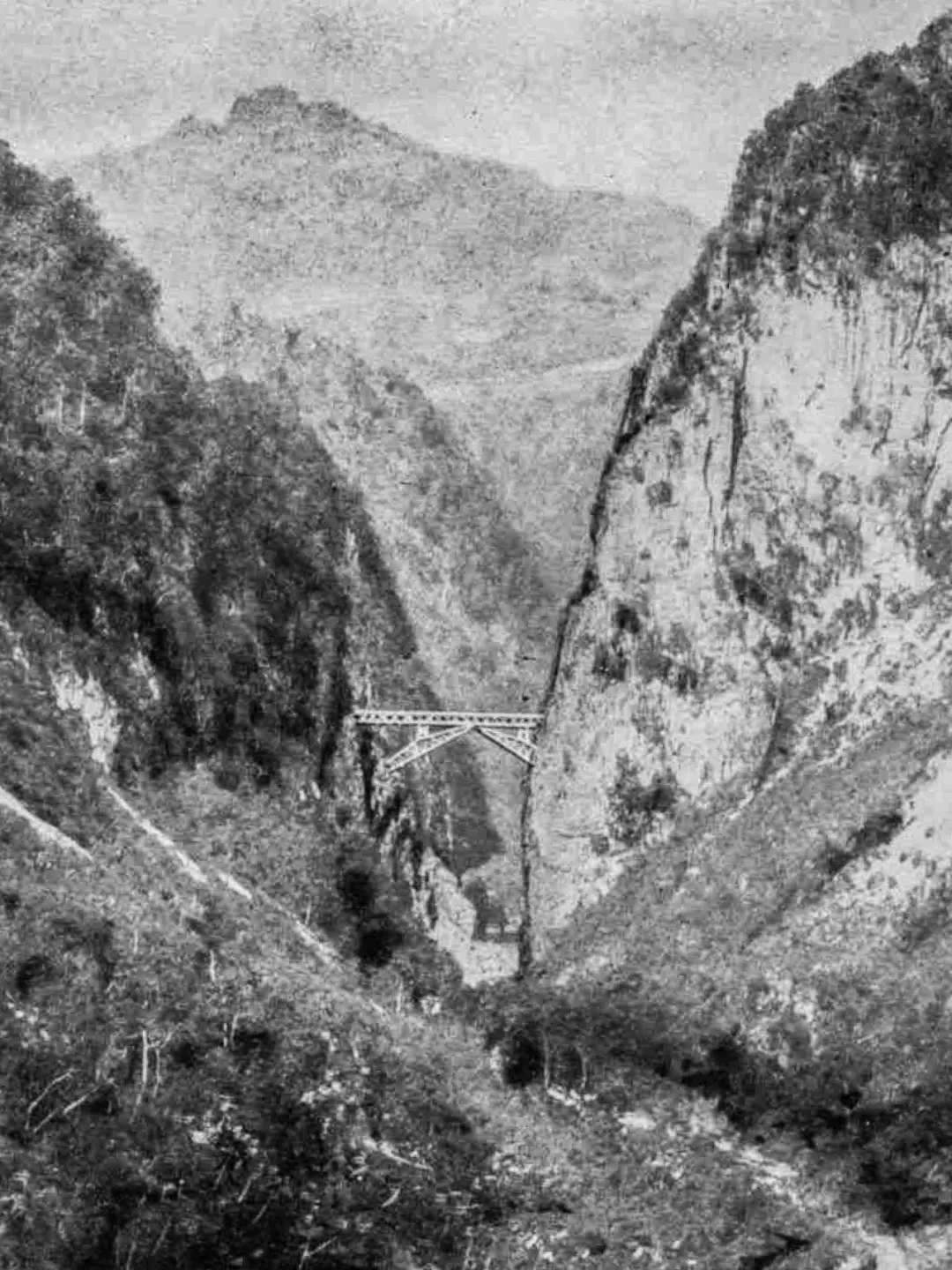 左:人字橋工程圖,摘自法文版《滇越鐵路》
