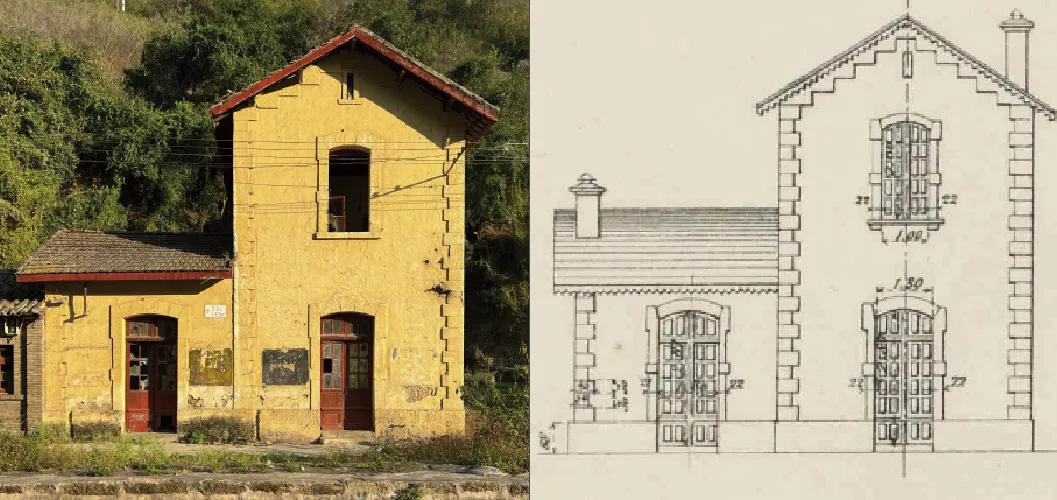 右:滇越鐵路站點(diǎn)工程圖,摘自法文版《滇越鐵路》