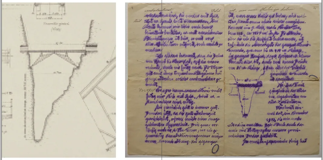 右:麥斯特爾(滇越鐵路工程師)手稿,圖片致謝昆明市博物館