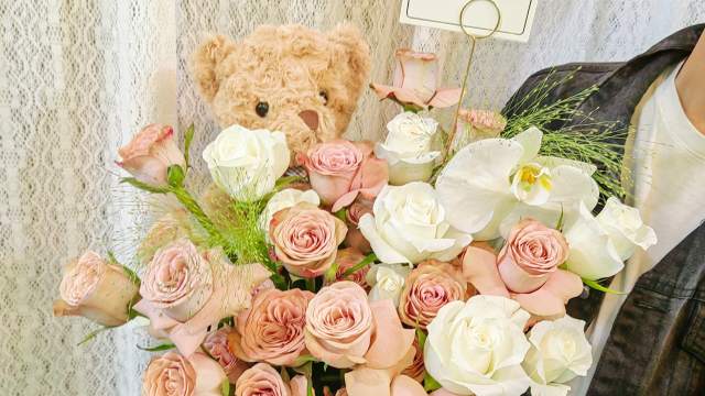 #卡布奇諾驕傲玫瑰蝴蝶蘭混搭抱抱桶