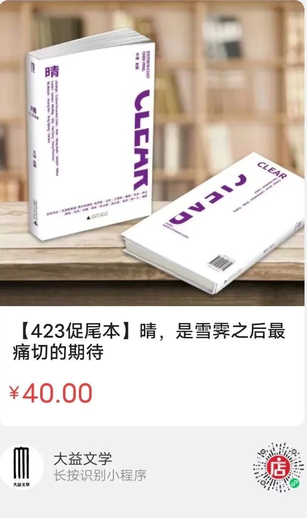 大益文學(xué)23輯書系收錄上百作家優(yōu)秀佳作,23個主題,23次文學(xué)面向,記錄了當(dāng)代作家對當(dāng)下時(shí)代、人性的思索、理解?!盾S》《晴》《如訴》《于無聲處》四輯書系數(shù)量已很少,限時(shí)以尾本(每輯5本)處理,每本40元,隨機(jī)贈精美小禮一份。