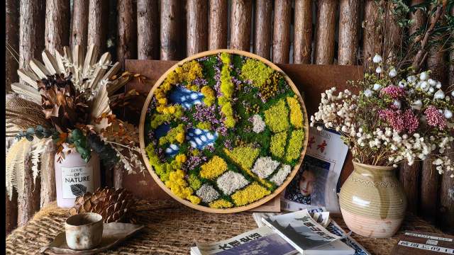 【參賽作品-03】:打印扎染+手工花藝實(shí)木框立體裝飾畫