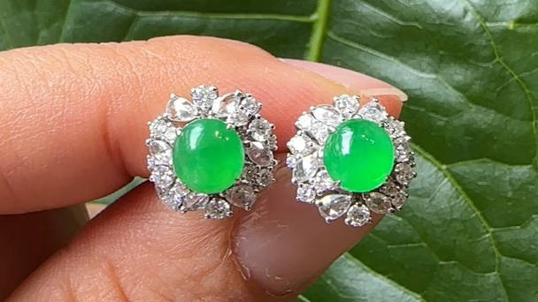滿綠翡翠蛋面耳釘