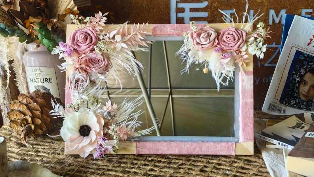 【參賽作品-04】:手工扎染+手工花朵+手工花藝+觸摸屏控制燈光立體裝飾鏡