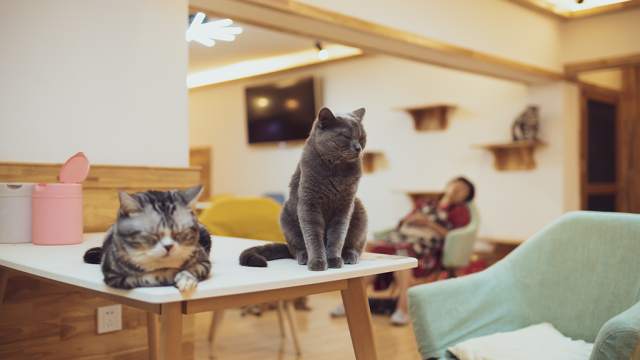 抓緊時間吃完,八點半了,趕緊上樓擼貓。消毒、戴鞋套,征得老板同意,拍照沒問題,但不能用閃光燈,以下片子均使用D810+35mm拍攝。。