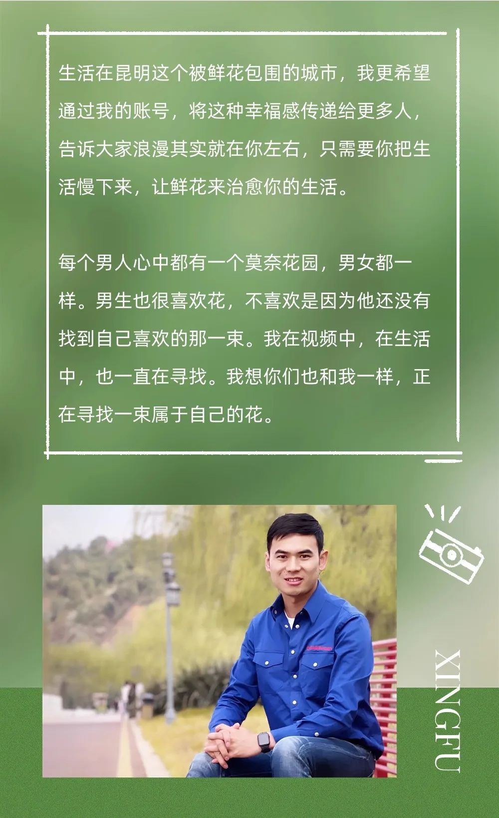 本期嘉賓張嘉瑞德是一位呈貢土生土長的花農(nóng),同時也是一位在自媒體平臺擁有近30萬粉絲的花卉博主“浪漫暴走”,他通過唯美的視角,展示花農(nóng)采花過程,帶著鮮花走遍云南,傳遞生活中的浪漫。讓我們一起走近他營造的視覺盛宴,享受春城的浪漫氣息,感受世界花都的魅力。