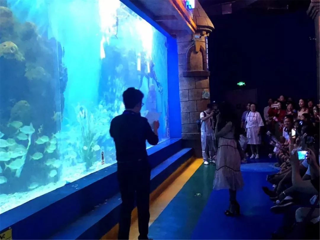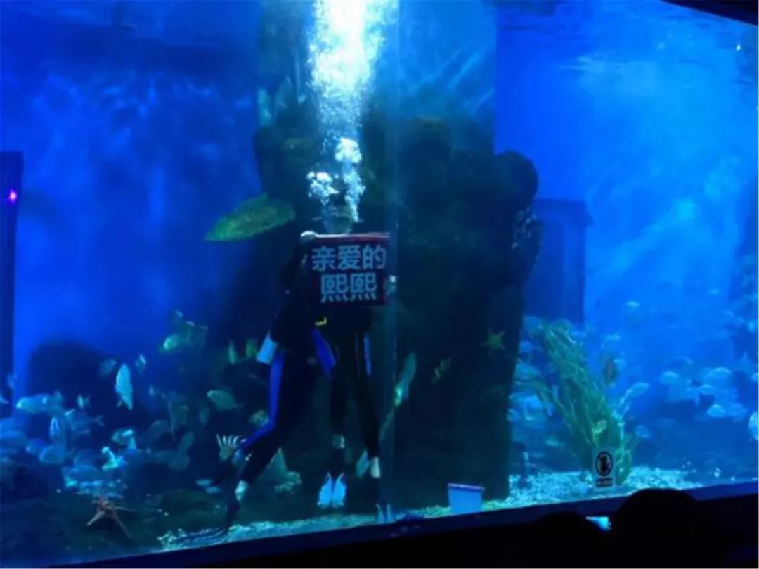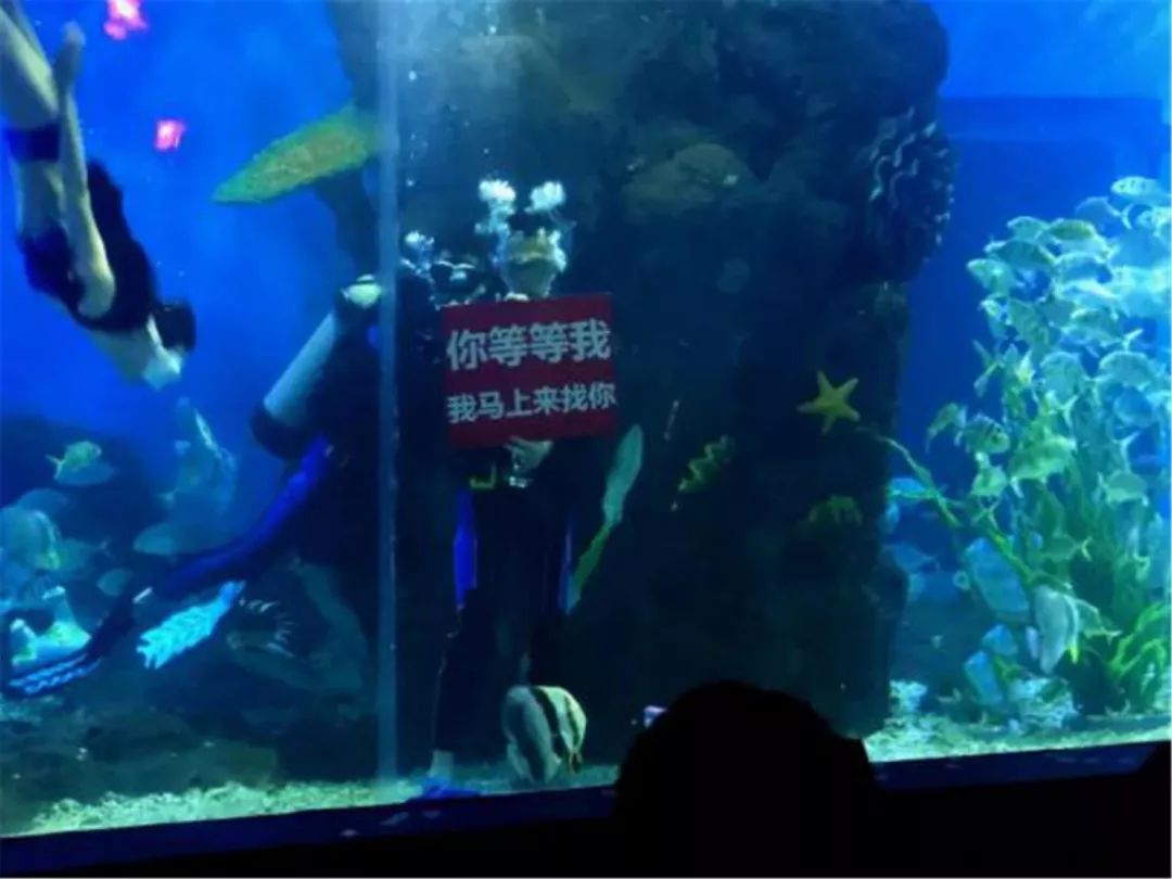 她被驚喜和浪漫的氛圍包圍著,依舊不敢相信自己從游客變成了這場(chǎng)浪漫求婚的主角。頓時(shí)熱淚盈眶的走向魚缸,看著水下的男朋友舉著“我愛(ài)你”、“嫁給我吧”、“等我出來(lái)”的牌子,此刻我覺(jué)得女孩的內(nèi)心既是喜悅的也是慌張的,只想趕緊見(jiàn)到男朋友。