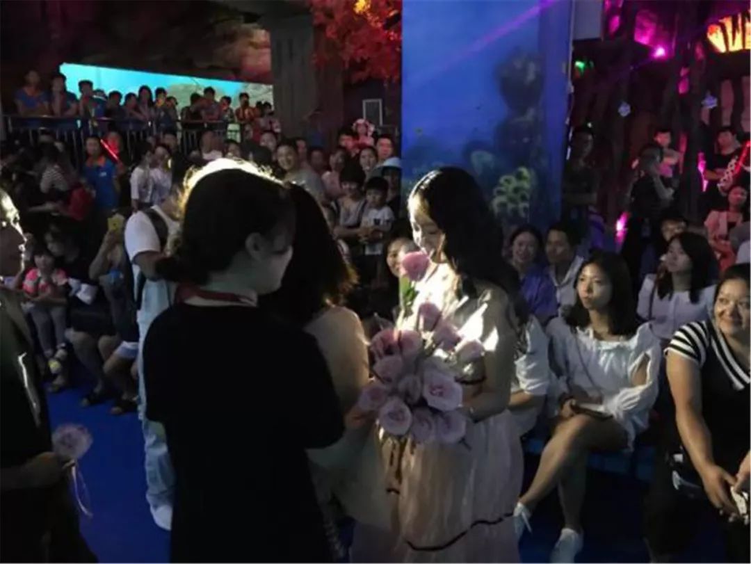 女孩同意了,并且進(jìn)入美人魚表演劇場(chǎng)前等待,此刻她還不知道被求婚的人就是她自己,她在四處張望,想要知道是哪一位姑娘被求婚,我想她的內(nèi)心是又羨慕又嫉妒..........