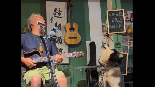 前幾天去了一趟麗江,傍晚時分,我和朋友在古城里吃完飯后隨便溜達,路過一家歸期酒館,酒吧里有三四只大狗狗,其中有一只阿拉斯加可以跟著音樂的節(jié)奏嚎叫,挺有趣的,瞬間被吸引。老板說這只會唱歌的狗叫旺財,是他們收留的流浪狗,他們發(fā)現(xiàn)了他的音樂天賦所以培養(yǎng)了起來。