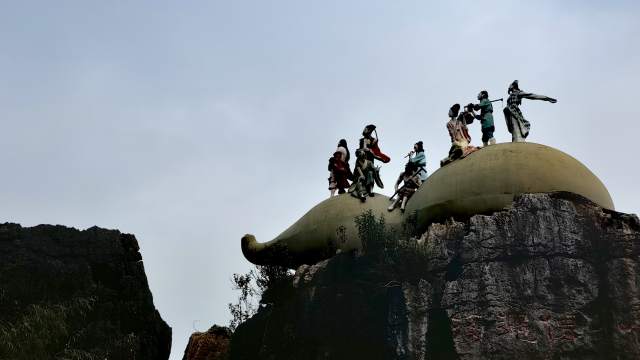 黑石箐石林是昆明市石林景區(qū)的一個景點,杏林大觀園中的國藥博覽園就在黑石箐,黑石箐占地約32.5公頃,海拔高度介于1820米至1890米之間,發(fā)育于二疊系棲霞組白云巖和白云質(zhì)灰?guī)r地層之中。石林或單個,或成群分布,高10-20米,以柱狀、蘑菇狀形態(tài)最為顯著。黑石等石林巖性差異對石柱形態(tài)和微地貌形態(tài)有顯著影響。頂部是完全白云質(zhì)化的石灰?guī)r,抗侵蝕性強;中間是次生孔隙度較高的白云巖,易風化溶解;下部是白云質(zhì)灰?guī)r。因此形成了上粗下細的蘑菇狀石林。