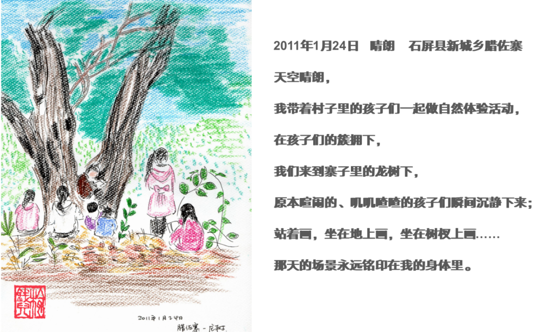 來(lái)到這里,讓我想起11年前,在臘佐寨和孩子們一起做自然筆記的場(chǎng)景。?