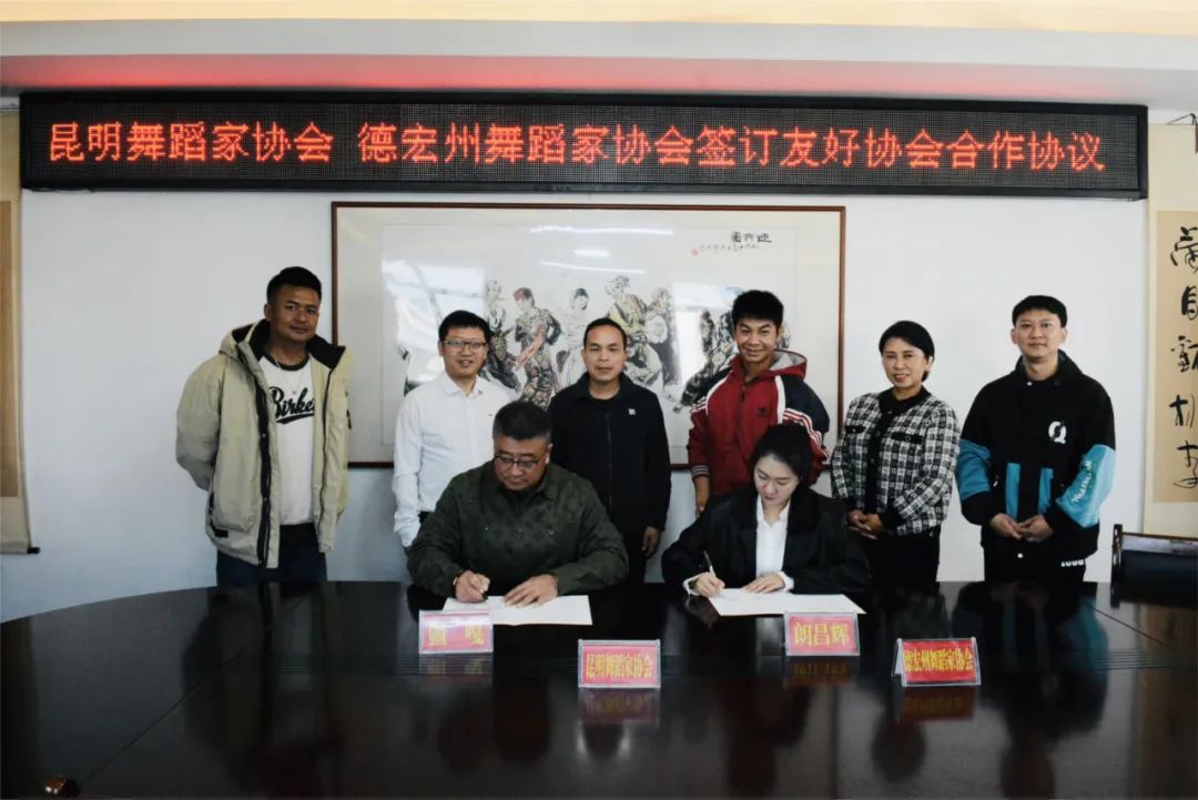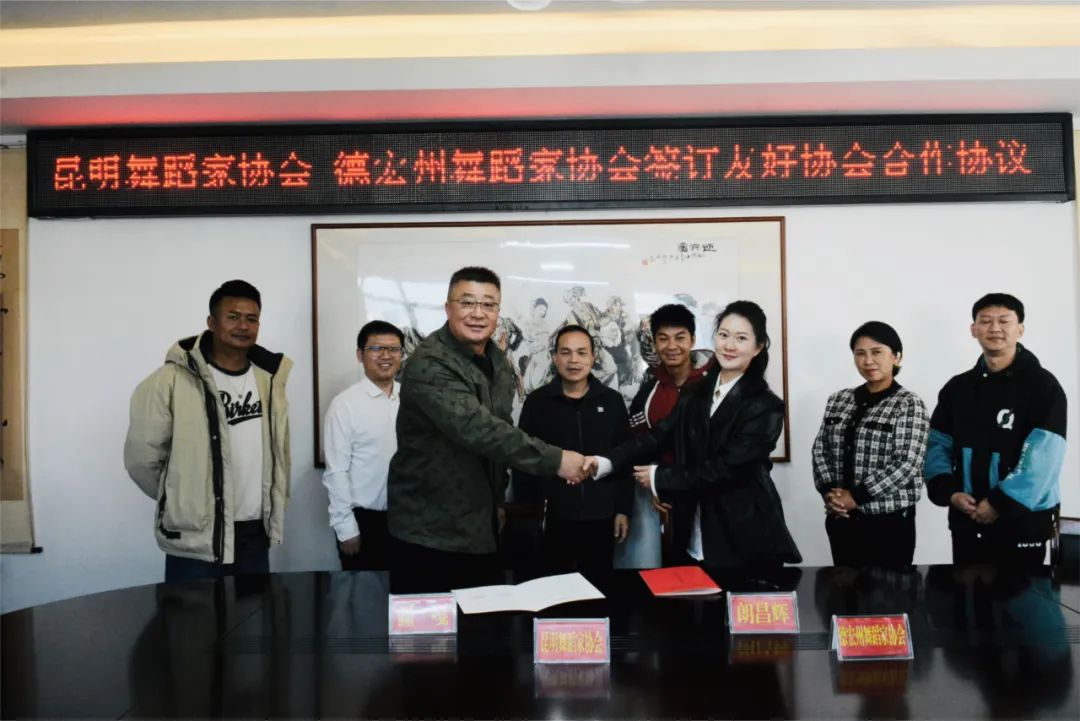 隨后,疆嘎主席與德宏州舞蹈家協(xié)會(huì)主席何佳諾簽訂友好協(xié)會(huì)合作協(xié)議。云南省舞蹈家協(xié)會(huì)理事、昆明舞蹈家協(xié)會(huì)少兒委員會(huì)副主任許志明,德宏州舞協(xié)班子成員副主席陳驛、趙靜、錢嘉俊,副秘書長(zhǎng)楊小虎列席簽約儀式。