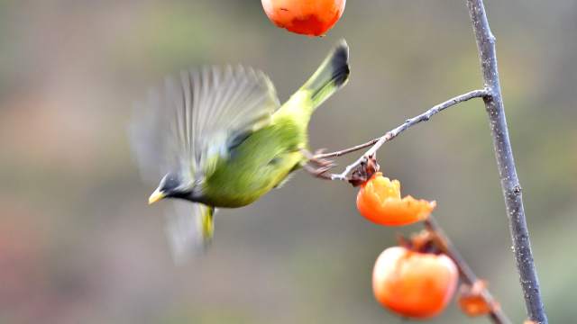 柿花枝頭的美食時(shí)光之鳳頭雀嘴鵯和老倌雀