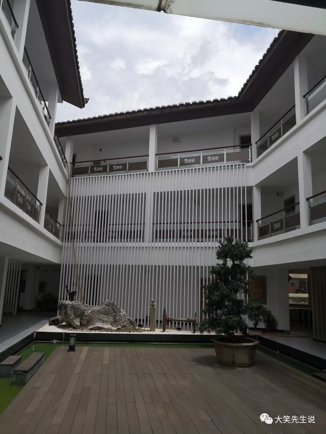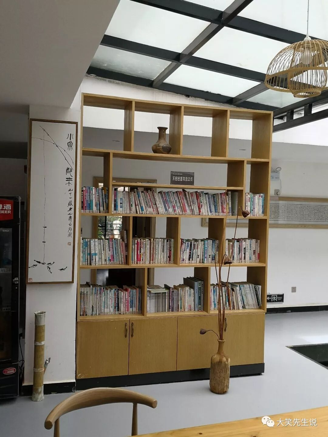 前臺服務的小姑娘并不熱情,可能是因淡季人少而略顯慵懶。但新開張的民宿在裝修陳設上還是頗費了一番心思的。一方小天井,一個放滿書的過廳,一個土風濃郁的后院,一個半開放的書房。特別是房間陽臺,落地玻窗,采光很好,視野開闊,窗外景物盡收眼底,在陽臺看書、品茗、發(fā)呆、打盹,都是一個極好的地方。