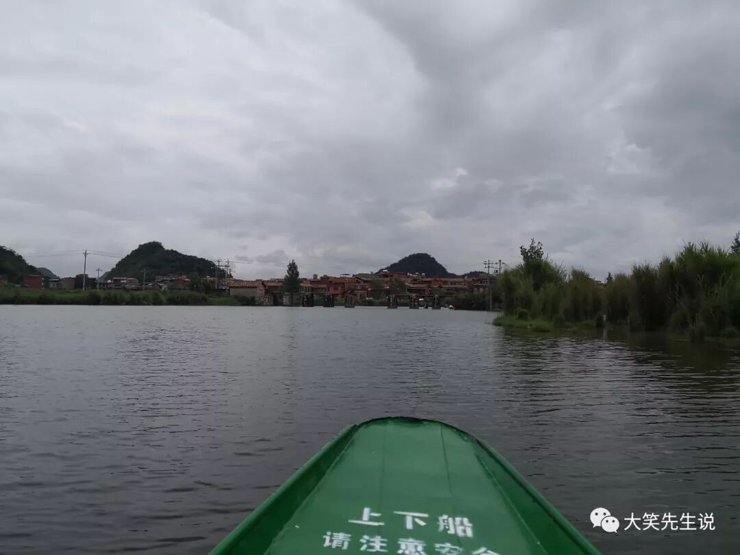午后小憩從禾田田出來,站在普者黑村口路邊東張西望,猶豫從哪兒開始游覽的時候,晴朗的天空忽然開始下雨了。我們正準備退縮,一輛掛著當地牌照的白色轎車在我們面前緩緩停下來,一個臉色稍黑的小伙搖下車窗探出頭來,用丘北普通話問道:克(去)哪里?……管他三七二十一,我們就直接鉆進了車。