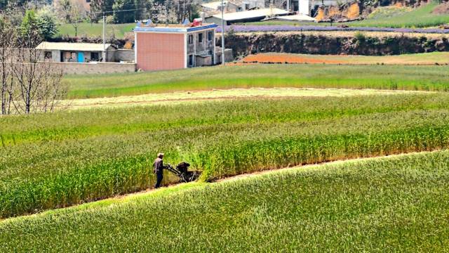 櫻花樹下收青稞 專屬昆明的唯美