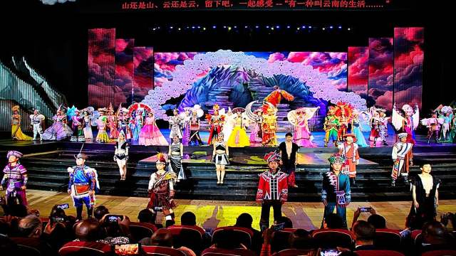 《云?說云南》匯聚了多民族的天籟之音,不同民族的歌聲各具特色,相互交織出云南民族文化的豐富圖譜。在這場演出中,每一幕都像是一幅絢麗多彩的畫卷,生動地展現(xiàn)了各民族的歷史、文化和風(fēng)情。演員們身著華麗的服飾,翩翩起舞,他們的舞蹈動作輕盈流暢,仿佛與水融為一體,演繹著人與自然的和諧共生,讓人們感受到了那份歡樂與祥和。空靈悠遠(yuǎn)的歌聲與激昂澎湃的節(jié)奏相互交織,奏響了一曲專屬于云南的獨(dú)特韻律,那旋律仿佛能穿透心靈,讓人沉浸其中,無法自拔。
