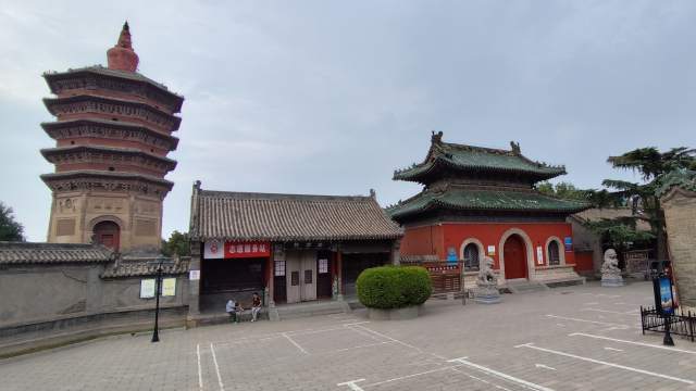 寺內(nèi)有天寧寺塔(文峰塔)五級(jí),由下而登,逐漸寬敞,其巔則為平臺(tái),周可容二百人,遠(yuǎn)望太行,歷歷在目?!瓪v年既久,請(qǐng)殿悉成瓦礫,唯此塔巍然獨(dú)存……”塔的上身五級(jí)出檐,從下往上逐級(jí)增大。每層出檐的斗拱又不盡相同。八角檐頭系有銅鐸,微風(fēng)吹動(dòng),叮當(dāng)作響,給人以高遠(yuǎn)靜穆之感。塔頂有相輪、塔剎。塔的下身四周正面,各有一門(mén),其中正南面為真門(mén),余為假門(mén)。券門(mén)首額,有磚雕二龍戲珠圖像。八角均有巨龍環(huán)繞的盤(pán)龍柱,上加鐵鏈枷鎖,非常壯觀。八根龍柱之間,有八幅磚浮雕佛教故事圖像:正南面為三身佛像;西南角是釋迦佛說(shuō)法像;西面為悉達(dá)多太子誕生圖像;西北角一幅是釋迦佛雪山苦行修定像;北面為觀音菩薩與善財(cái)龍女像;東北角是佛為天人說(shuō)法像;東面一幅為釋迦佛涅像;東南角是波斯慝王及王后侍佛聞法像。這些浮雕造型生動(dòng),神情逼真,姿態(tài)自然,栩栩如生,是不可多得的藝術(shù)珍品。另?yè)?jù)安陽(yáng)縣志記載:此塔建于五代周廣順二年(952年),距今已有一千多年歷史,2001年定為中國(guó)國(guó)家重點(diǎn)文物保護(hù)單位。