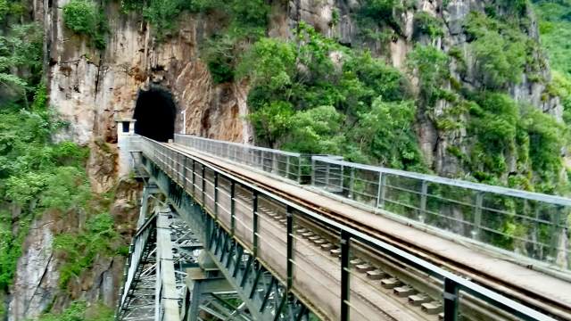人字橋(現(xiàn)稱為五家寨鐵路橋),位于屏邊灣塘鄉(xiāng)五家寨,橫跨四岔河峽谷,橋面距谷底垂直高度達(dá)102米,懸掛于兩岸絕壁之間,全長67米,寬4.2米,是滇越鐵路(中國昆明至越南海防)的關(guān)鍵工程。1903年開始勘測設(shè)計(jì),1907年3月開建至1908年12月完工,1910年昆明至海防全線通車。全橋由法國工程師設(shè)計(jì),鋼結(jié)構(gòu)鉚釘連接而成。地處典型的喀斯特地貌區(qū),周圍為深切峽谷和湍急河流,地勢(shì)險(xiǎn)峻,南溪河從橋下穿流而過。當(dāng)時(shí)中國大量勞工參與施工,但山高巖硬谷深,施工難度極大,傷亡的中國勞工無數(shù)。橋的建成成為當(dāng)時(shí)世界鐵路橋梁技術(shù)的杰作。 作為滇越鐵路的“咽喉”橋梁,人字橋至今仍承擔(dān)中越米軌國際貨運(yùn)班列的通行任務(wù),每日有列車往返于中國開遠(yuǎn)與越南海防之間。