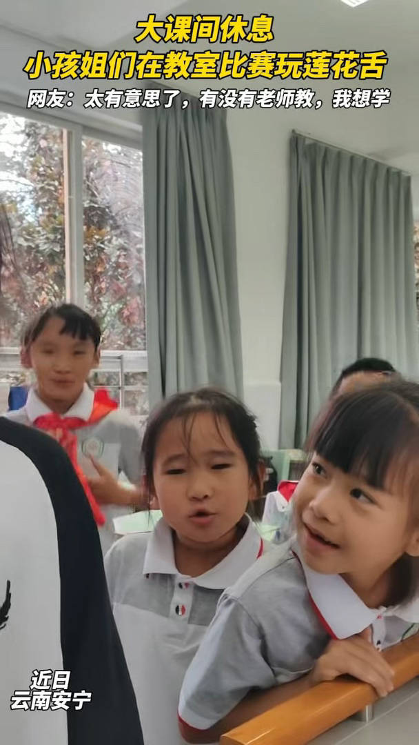 大課間休息,小孩姐們?cè)诮淌冶荣愅嫔徎ㄉ?