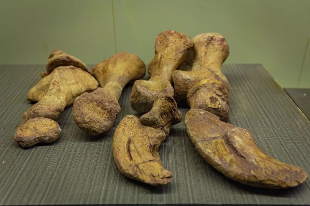 恐龍頭骨、脊柱、腳趾、海洋生物等化石碎片