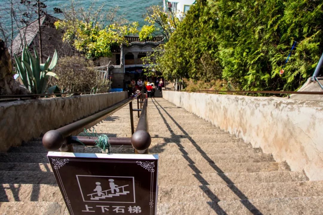 島上榕樹和竹林交錯(cuò),保證了島上的清幽和涼爽,穿過榕樹林,沿著青石小路不斷向上攀登,去尋找如同寶石一樣散落在島上的古建筑。