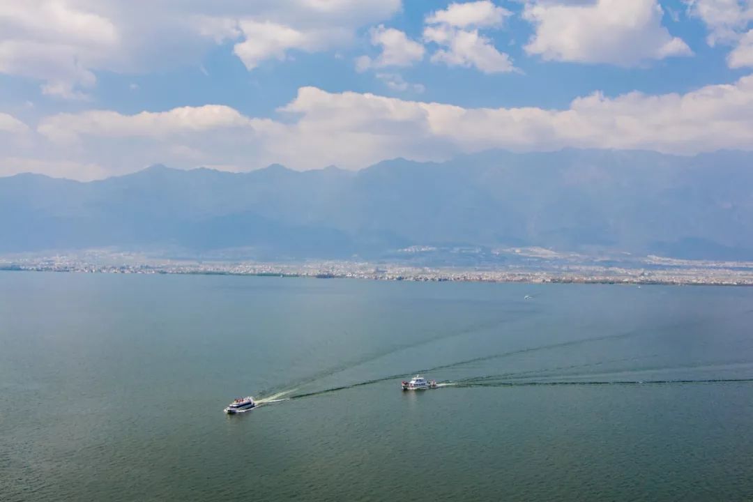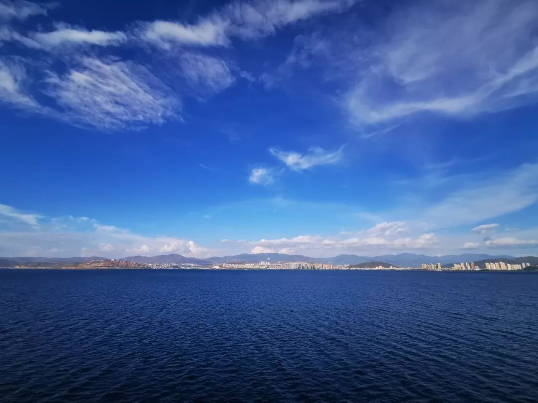 俯瞰洱海,洱海顯現(xiàn)出一種含蓄美和優(yōu)雅美,同時(shí)也帶著海納百川的磅礴氣勢。
