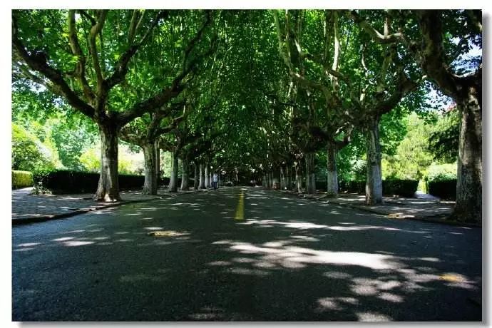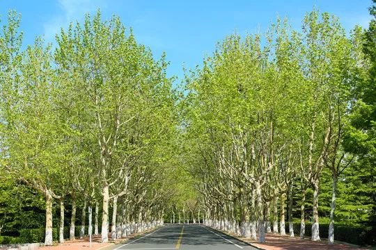 筆直的道路,在威武帥氣的梧桐樹裝扮下,顯得綿延、悠長,遠遠望去,仿佛延伸著的一條時空隧道。