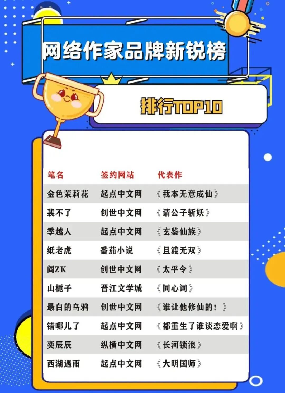 四大榜單揭曉,涵蓋作家、IP與海外傳播